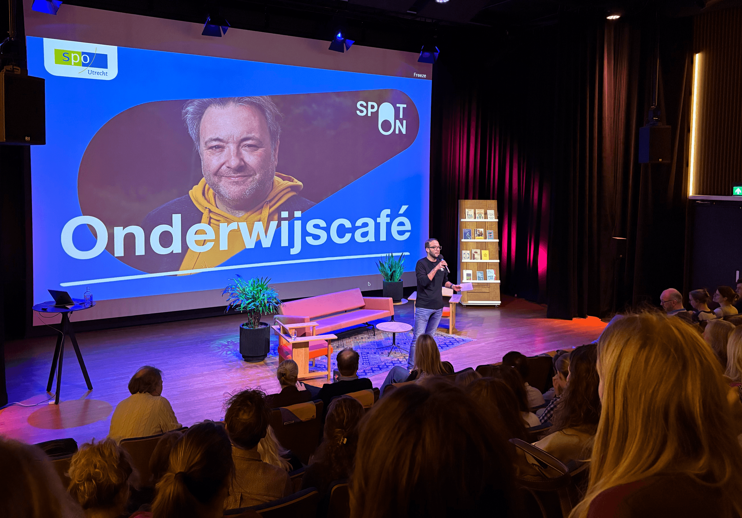 Afgelopen donderdag stroomde de theaterzaal van Bibliotheek Neude vol met collega’s tijdens het SPO Utrecht Onderwijscafé. Een evenement dat we organiseren om te inspireren, te leren en elkaar te ontmoeten. Na eerdere edities met onder andere Özcan Akyol en Steven Pont, stond vorige week Pedro De Bruyckere op het podium. De Bruyckere is pedagoog (of pedagoochelaar zoals hij zichzelf noemt), onderzoeker én bevlogen verhalenverteller. En dat laatste bleek geen understatement. Met humor, scherpe voorbeelden en een flinke dosis enthousiasme nam hij ons mee in de wereld van onderwijsmythes, leermethodes en praktische handvatten voor in de klas. Kleine, concrete tips die het verschil kúnnen maken. Want niet alles werkt en bijna niets werkt altijd.