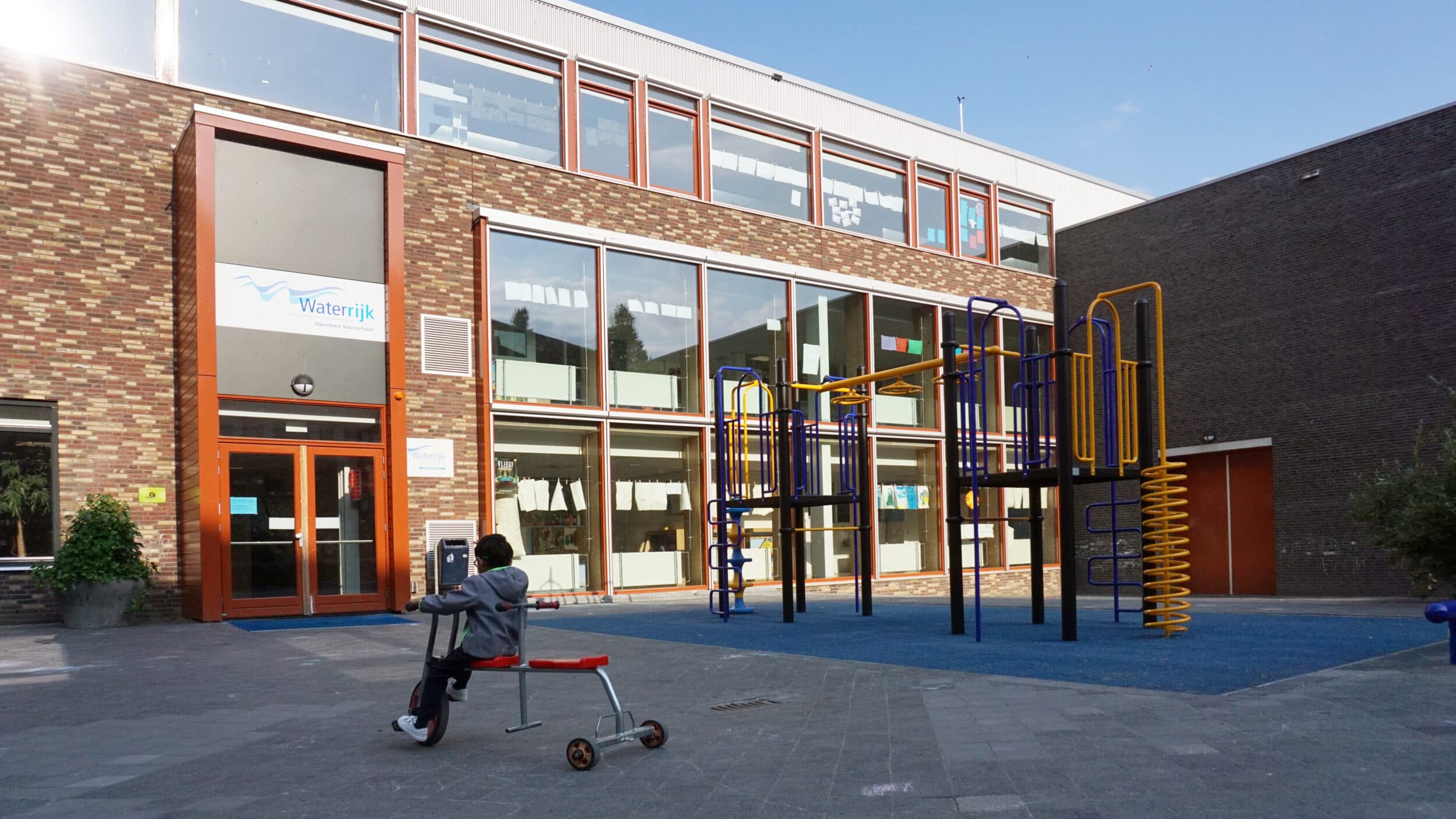 Waterrijk is een kleurrijke school in Terwijde. Onze school heeft zo'n 190 leerlingen met een heel diverse achtergrond die in de buurt wonen. Iedereen is welkom en we zorgen voor elkaar. We staan voor goed onderwijs door hoge, realistische verwachtingen uit te spreken en uit te dragen. Het versterken van ons pedagogisch klimaat is waar we als team ons hard voor maken: dit doen we met elkaar, met ouders en de partners om ons heen, vanuit een positieve professionele houding. Dit jaar richten we ons op het versterken van pedagogisch klimaat, implementatie van STAAL en onze eigen professionalisering.